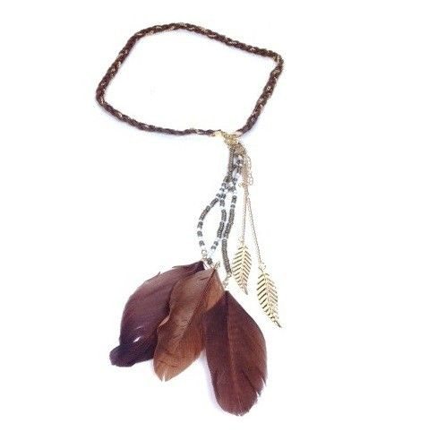 S_600113I - IBIZA LOOK GEVLOCHTEN HAARBAND MET VEREN EN KRALEN BRUIN (1st)