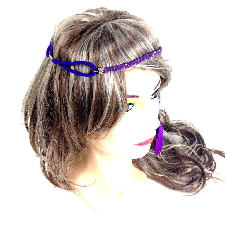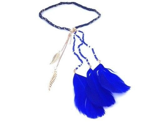 S_600113G - IBIZA LOOK GEVLOCHTEN HAARBAND MET VEREN EN KRALEN BLAUW (1st)