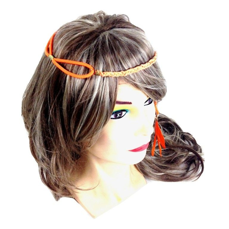 S_600113J - GEVLOCHTEN HAARBAND MET VEREN EN KRALEN ORANJE (1st)