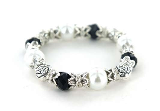 S_89690 - SILVERLOOK ARMBAND ZWART/WIT (6st)