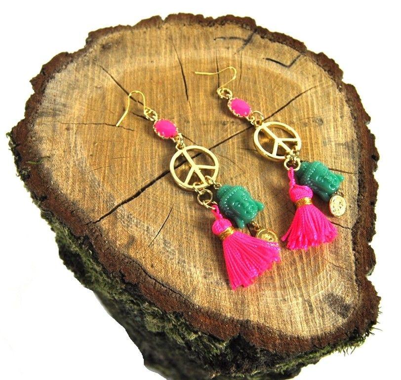 S_5675108 - IBIZA LOOK OORBELLEN FUCHSIA / GROEN BUDDHA (1st)