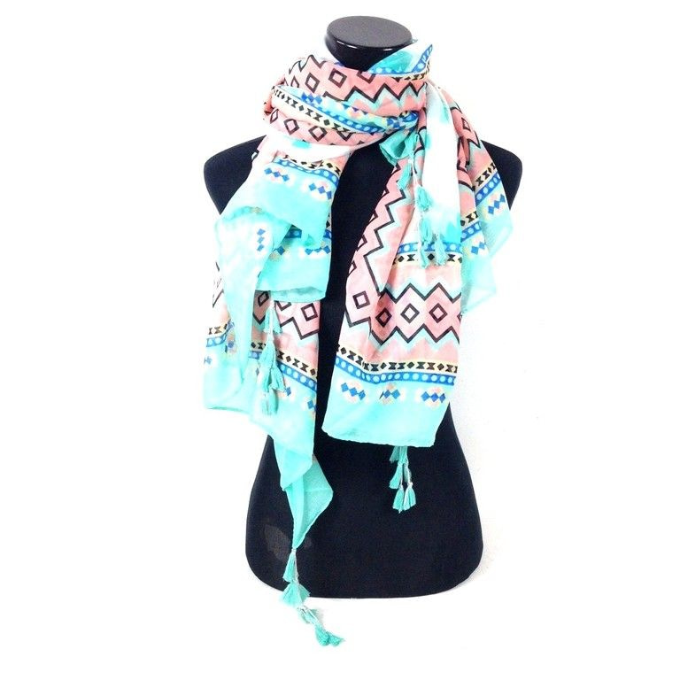 S_2373402 - LUXE SJAAL AZTEK PRINT MINT GROEN KWASTJES (1st)