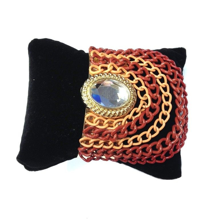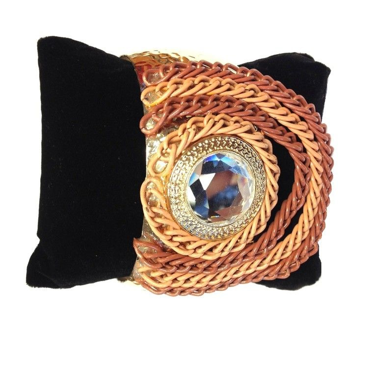 S_600422A - LUXE BREDE ARMBAND GOUD/BRUIN MET KETTINGEN (1st)