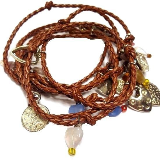 S_629018D - HALSKETTING MET BEDELS BRUIN 180 CM. (1st)