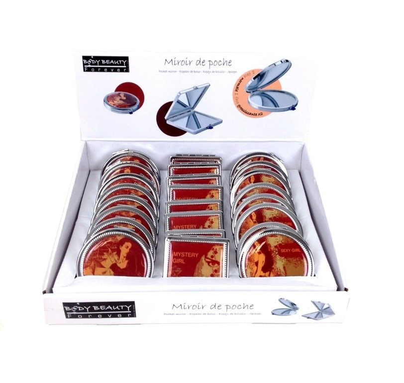 S_5105473 - SPIEGELTJES IN DISPLAYBOX BODY&BEAUTY ROND/VIERKANT (24st)
