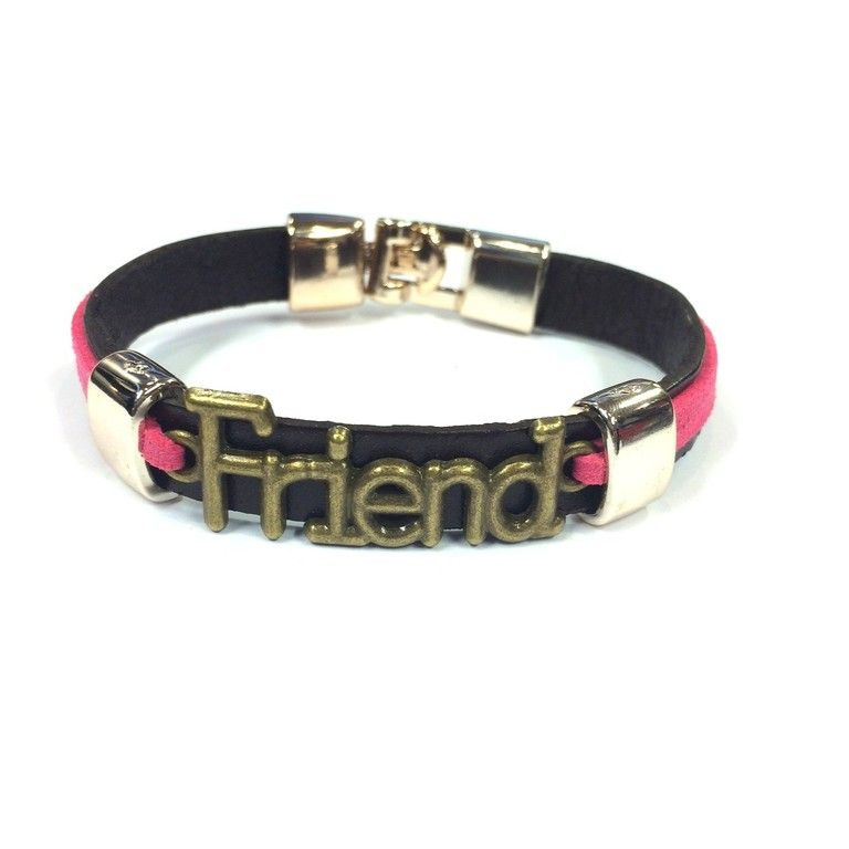 S_811348C - LEDEREN ARMBAND ROZE FRIEND (3st)