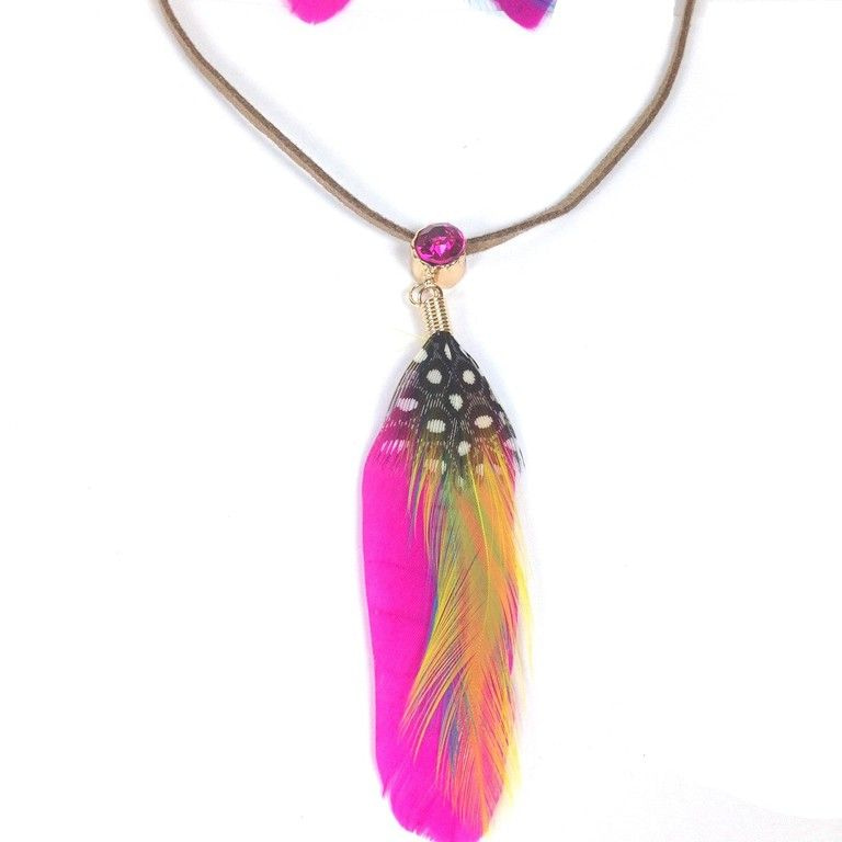 S_600118A - HALSKETTING/OORBELLEN FUCHSIA/GEEL (1st)