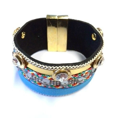 S_811256V - LEDEREN IBIZA ARMBAND AZTEK BLAUWE STRASS (1st)