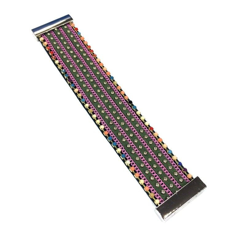 S_600800N - ARMBAND ZILVER MAGNEETSLUITING - GROEN/ROZE STUDS (1st)