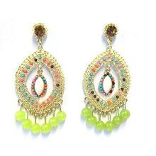 S_600403G - LUXE OORBEL MET GROENE BOLLETJES / KRALEN MULTI (1st)