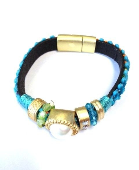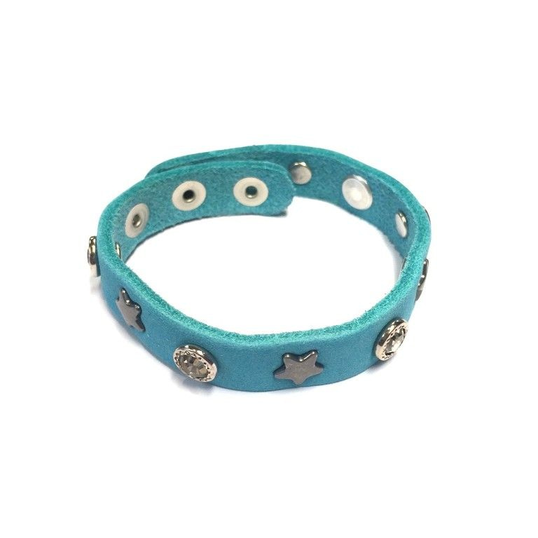S_600482 - LEDEREN ARMBAND MET STRASS/STUDS STERREN AQUA BLAUW (1st)