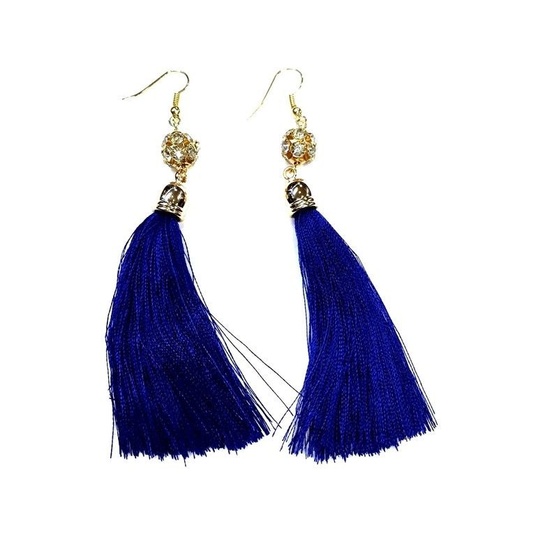 S_600781M - OORBELLEN KOBALTBLAUW MET KWAST EN STRASS STEENTJES (1st)