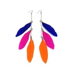 S_600750D - OORBELLEN MET 3 VEERTJES BLAUW-ORANJE-ROZE (1st)