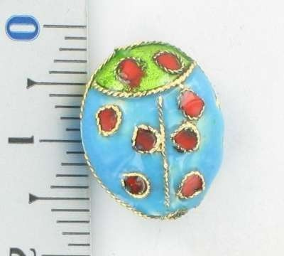 S_32704b - CLOISONNE KRALEN BLAUW/GROEN LIEVEHEERSBEESTJE (6 st.)