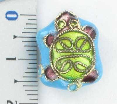 S_32904c - CLOISONNE KRALEN GROEN/BRUIN/BLAUW SCHILDPAD (6 st.)