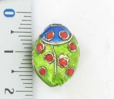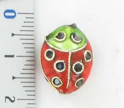 S_32706b - CLOISONNE KRALEN ROOD/GROEN LIEVEHEERSBEESTJE (6 st.)