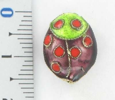 S_32709 - CLOISONNE KRALEN AUBERGINE/GROEN LIEVEHEERSBEESTJE (6 st.)