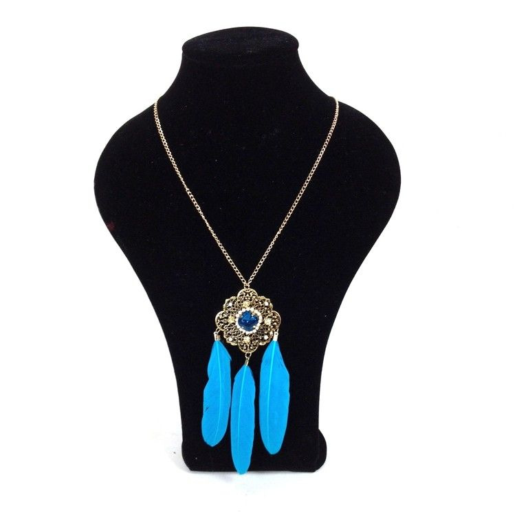 S_600159B - HALSKETTING MET TURQUOISE STRASS-STEEN EN VEER LICHTBLAUW(1st)