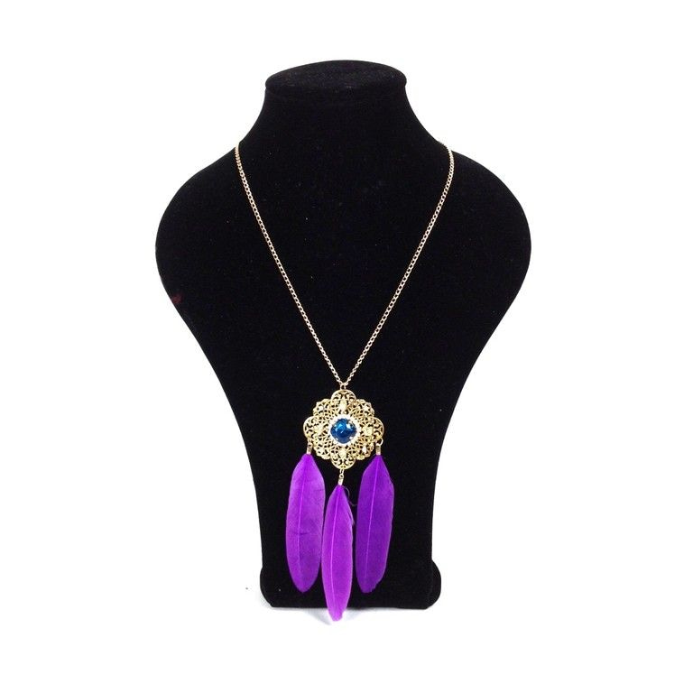 S_600159F - HALSKETTING MET TURQUOISE STRASS-STEEN EN VEER PAARS (1st)