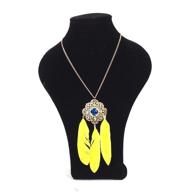 S_600159C - HALSKETTING MET TURQUOISE STRASS-STEEN EN VEER GEEL (1st)
