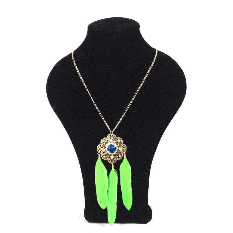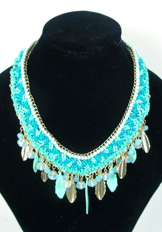 S_600159E - HALSKETTING MET TURQUOISE STRASS-STEEN EN VEER GROEN(1st)