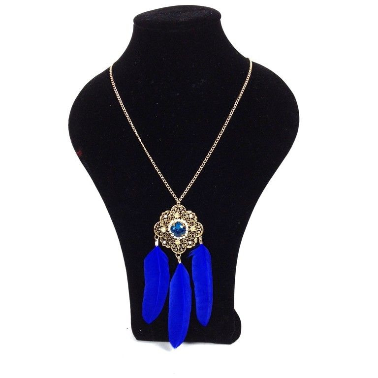 S_600159I - HALSKETTING MET TURQUOISE STRASS-STEEN EN VEER DONKERBLAUW (1st)