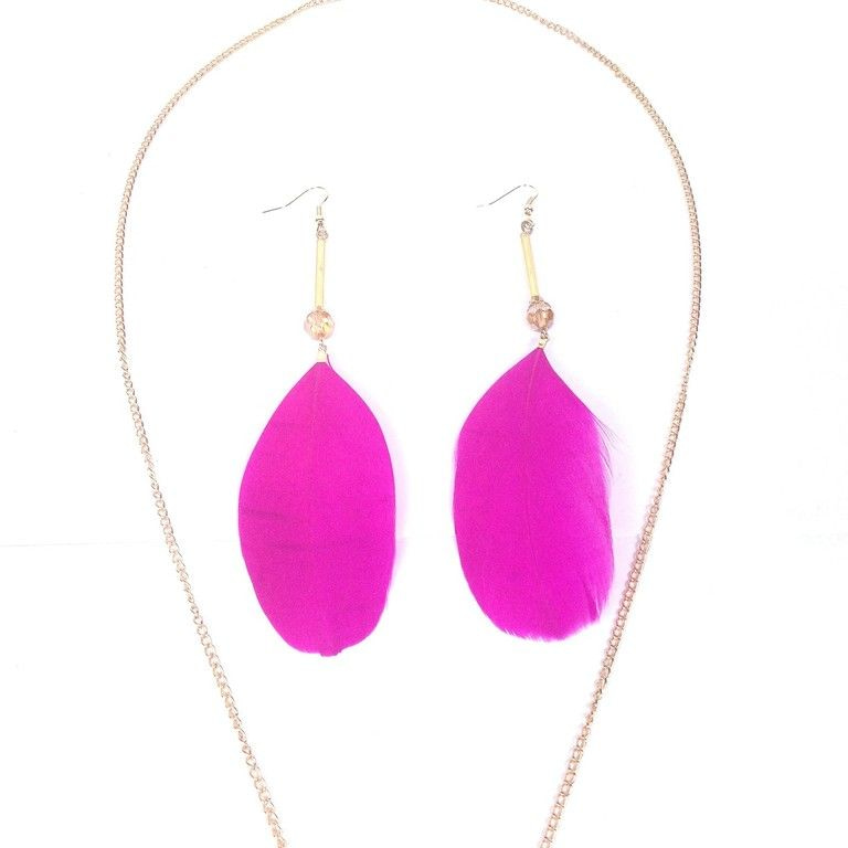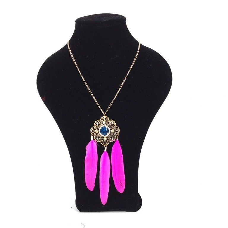 S_600159D - HALSKETTING MET TURQUOISE STRASS-STEEN EN VEER FUCHSIA (1st)