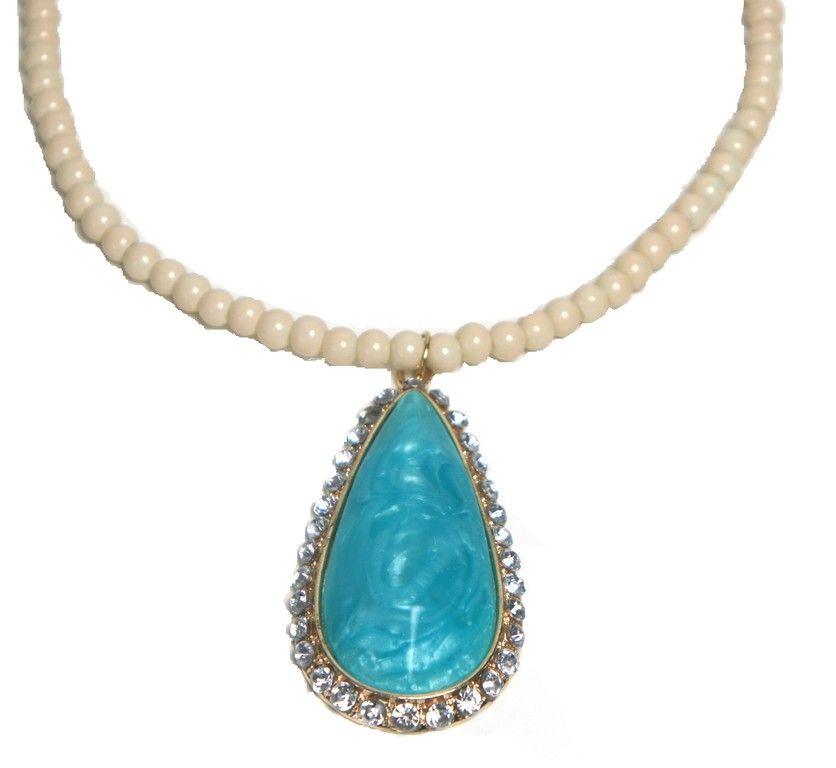 S_700303 - LUXE HALSKETTING DRUPPEL MET STRASS TURQUOISE(1st)