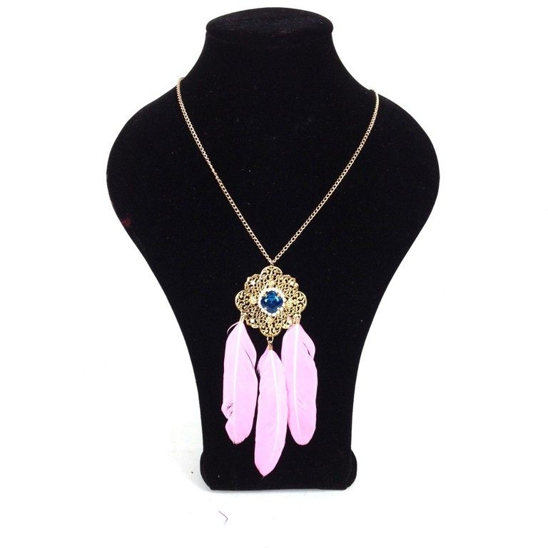 S_600159H - HALSKETTING MET TURQUOISE STRASS-STEEN EN VEER ROZE (1st)