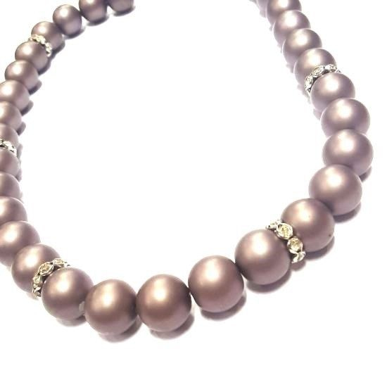 S_796121A - HALSKETTING PAREL MAT DONKERGRIJS MET STRASS (4st)