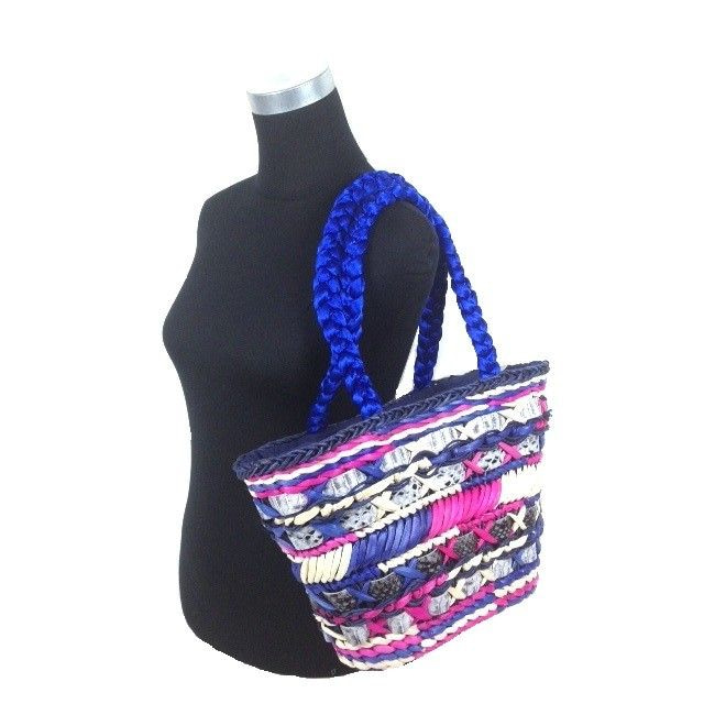 S_811288D - GEVLOCHTEN RIETEN TAS MULTI COLOR / KOBALT BLAUW (1st)