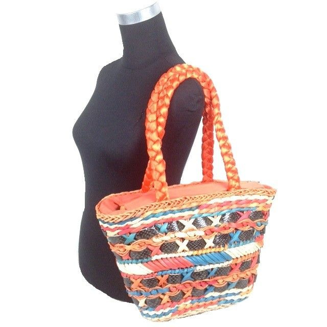 S_811288C - GEVLOCHTEN RIETEN TAS MULTI COLOR / ORANJE (1st)