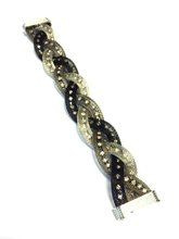 S_600087 - IBIZA LOOK ARMBAND ZWART/GRIJS STRASS (1st)
