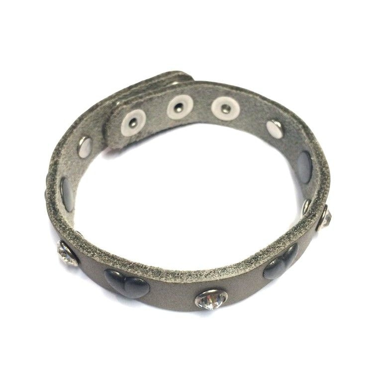 S_600486B - LEDEREN ARMBAND MET STRASS EN STUDS HARTEN TAUPE(1st)