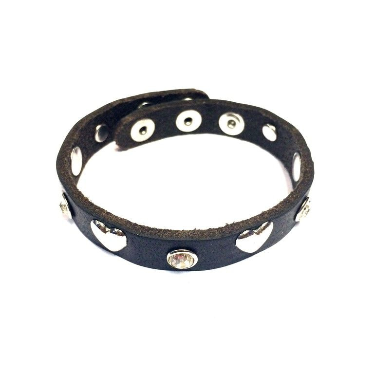 S_600486A - LEDEREN ARMBAND MET STRASS EN STUDS HARTEN ZWART(1st)