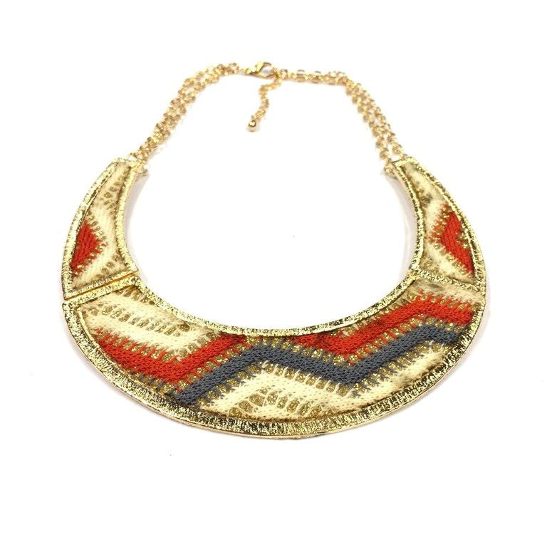 S_600568A - AZTEK HALSKETTING ROOD/GRIJS/CRÈME (1st)