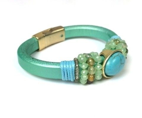 S_8643407 - IBIZA LOOK ARMBAND MINTGROEN MET TURQUOISE STEEN (1st)