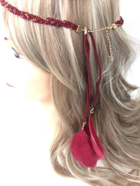 S_600028D - IBIZA LOOK GEVLOCHTEN HAARBAND MET VEREN BORDEAUX (1st)