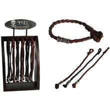 5760079 - LEREN GEVLOCHTEN "SKULL" ARMBANDJES OP HOUTEN DISPLAY (96st.)