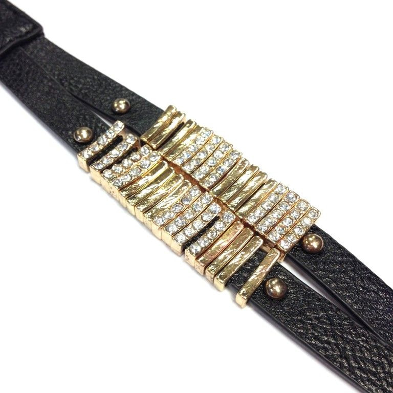 S_811324B - LEDEREN ARMBAND MET STRASS ZWART (1st)