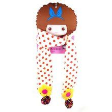 S_812243GB - KINDERSJAAL GEEL STIPPEN PAARS MET ROZE/LICHTGROENE BLOEM (1st)