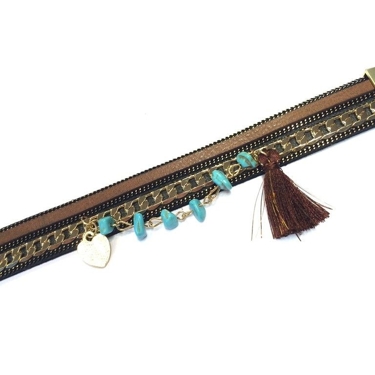 S_9224500 - LUXE BRUINE ARMBAND MET TURQUOISE STEENTJES (1st)
