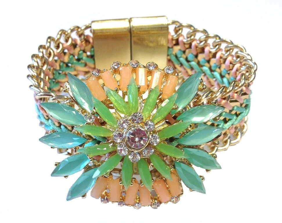S_8670407 - LUXE IBIZA LOOK ARMBAND ZALM/TURQUOISE BLOEM (1st)