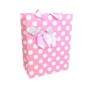 S_811975B - LUXE VERPAKKINGS TAS STIPPEN KLEINE HARTJES ROZE 17.5X23CM (12st)