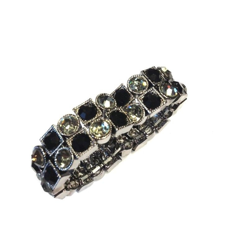 S_600425 - ARMBAND STRASS ZWART/ZILVER (2st)