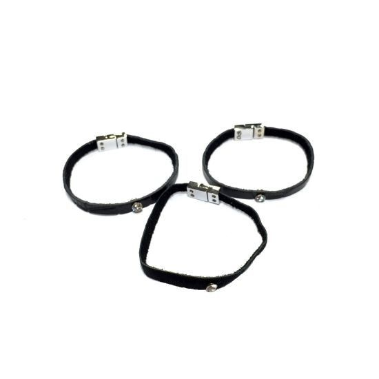 S_629065C - ARMBAND LEER ZWART MET STRASS STEEN (3st)