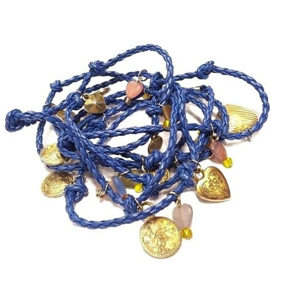 S_32804b - Art.nr: 32804b - CLOISONNE KRALEN BLAUW/GOUD KIKKER (6 st.)