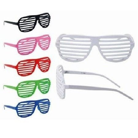 Een stoere shutter shades bril in verschillende kleuren. Een leuk accessoire tijdens feesten en carnaval.